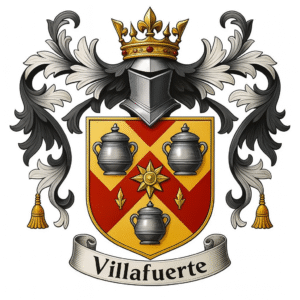 Villafuerte es un apellido patronímico que deriva del nombre Rodrigo. Su origen se remonta a las montañas de Santander y, con el tiempo, se expandió por toda España y América. Curiosamente, en mi familia se ha utilizado por décadas el escudo de Villafuerte de España, aunque en realidad, por nuestra línea, corresponde el de Castilla.